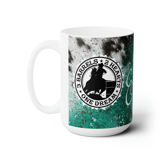 Personalized Ceramic Mug 15oz- 3 Hearts, 2 Barrels