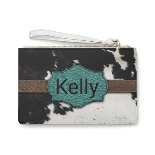 Personalized Clutch Bag- Cowprint with Leather Look Name Space
