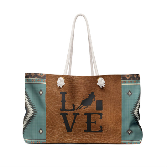 Weekender Bag- Barrel Racer Love on Leather and Aztec Print