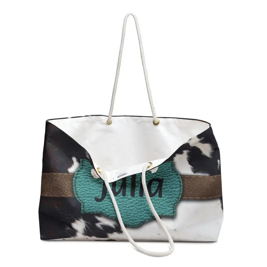 🐄 Cow Print Weekender Tote: Personalize Your Travels in Style! 🧳