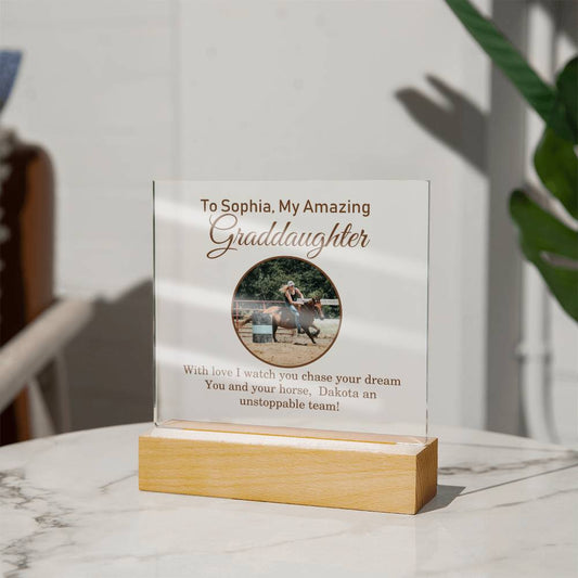 📸 Custom Barrel Racing Girl Acrylic Square Plaque: Cherish Moments with [Granddaughter's Name] and [Horse's Name] 🐎